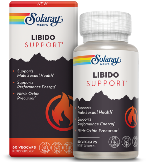 Solaray Libido Support* formula features clinically studied, plant-based ingredients that are lab-verified and triple-tested. Made with tongkat ali extract to support libido, yohimbe to support performance energy, and L-Arginine HCI, a nitric oxide precursor, to support healthy blood flow in the body.*